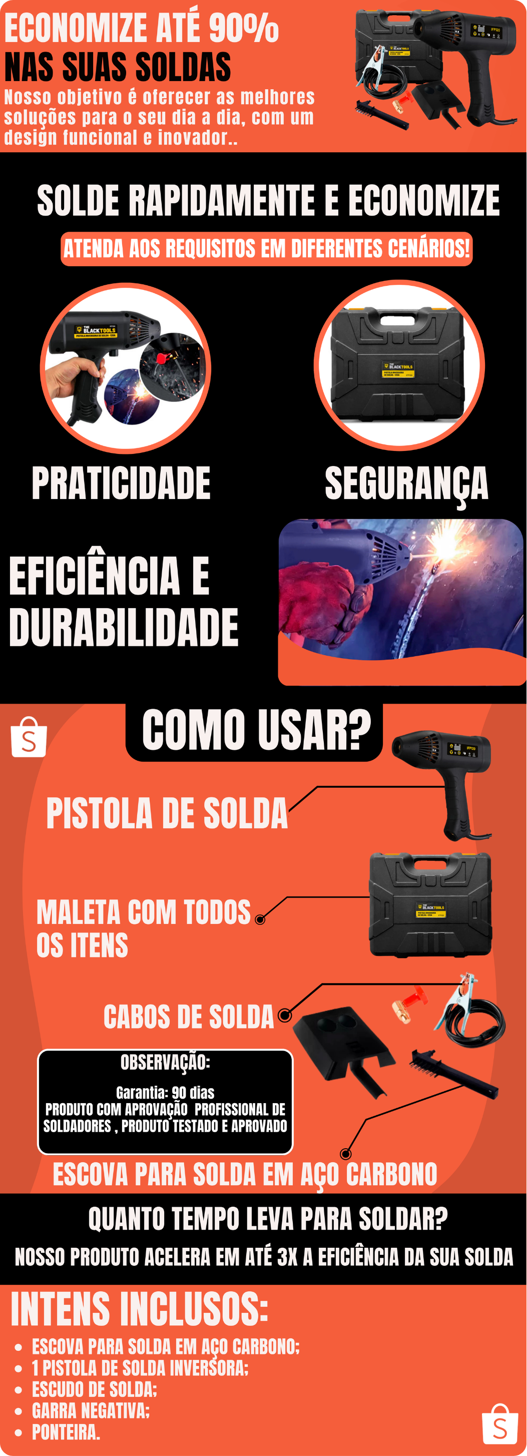 Pistola De Solda Inversora Mma 120a Portátil The Black Tools Frequência 60hz 220v